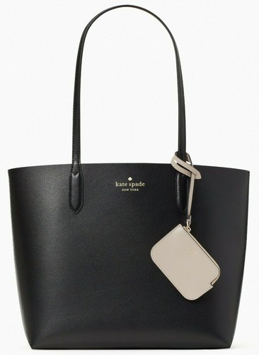 Kate Spade Ava Reversible Beige Leather Tote + Pouch Black NWT K6052 $359 FS